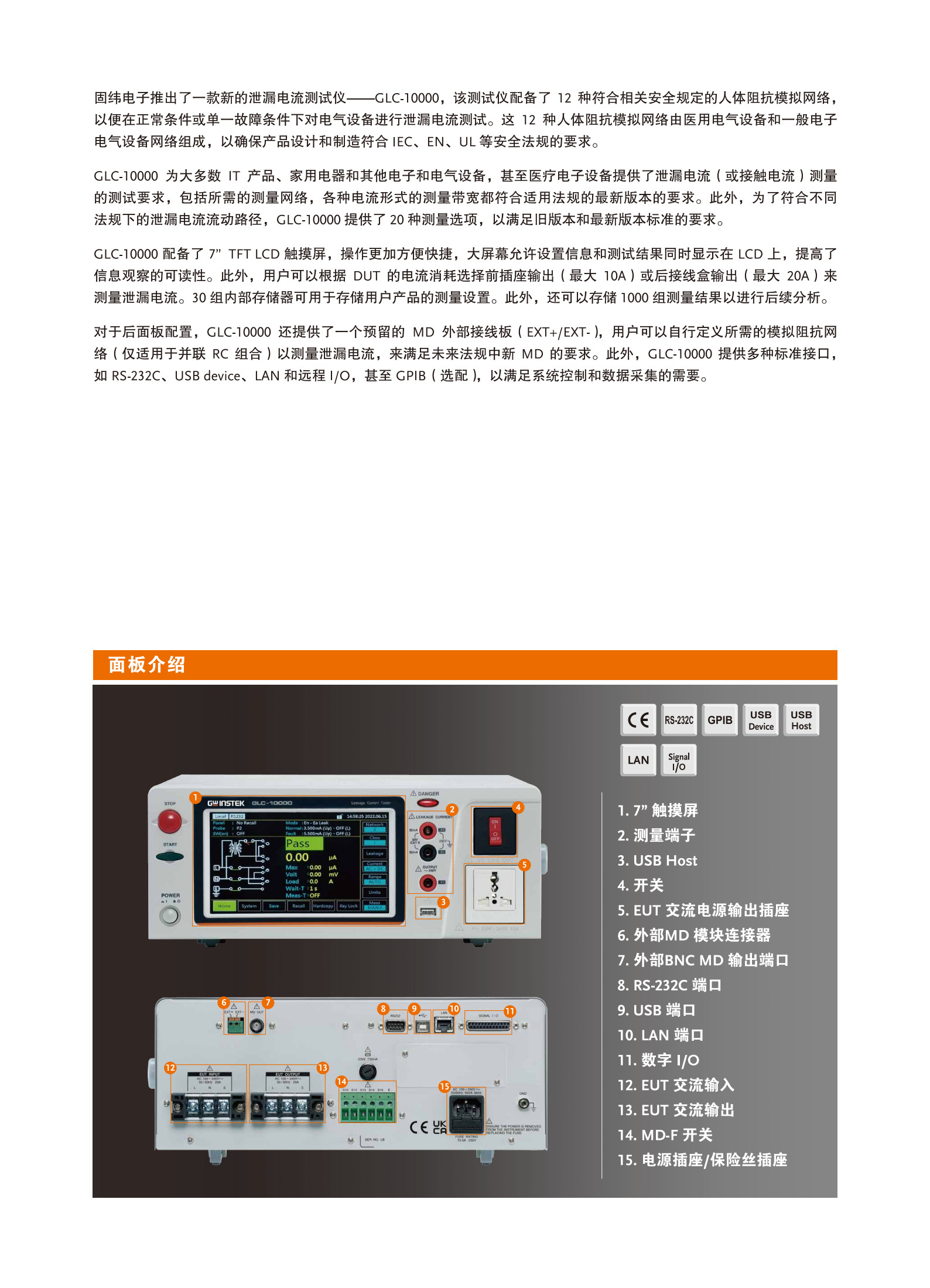 固纬GLC-10000泄漏电流测试仪
